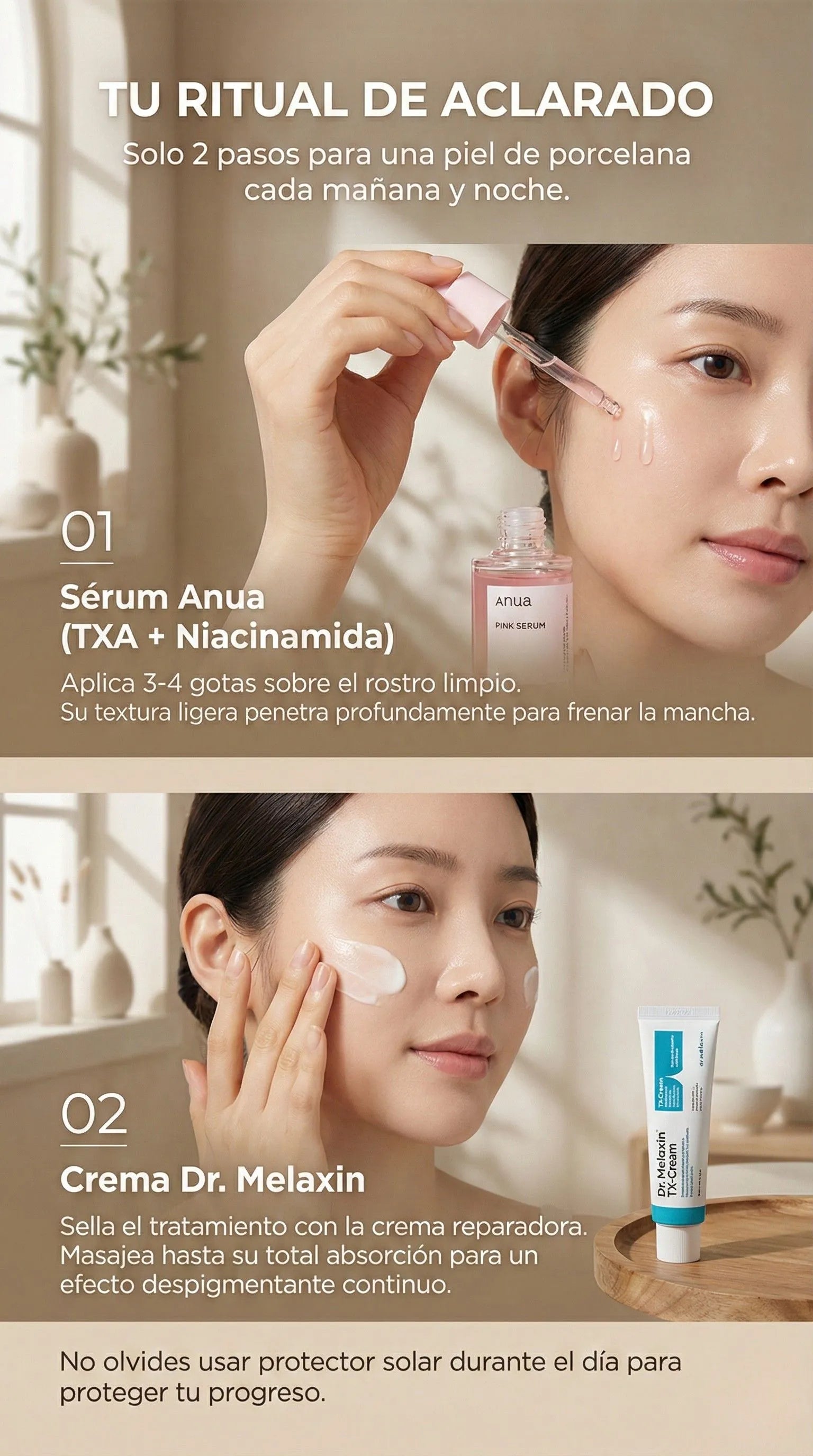 "Mi dermatóloga me recomendó el Ácido Tranexámico y este dúo coreano es el mejor que he probado."